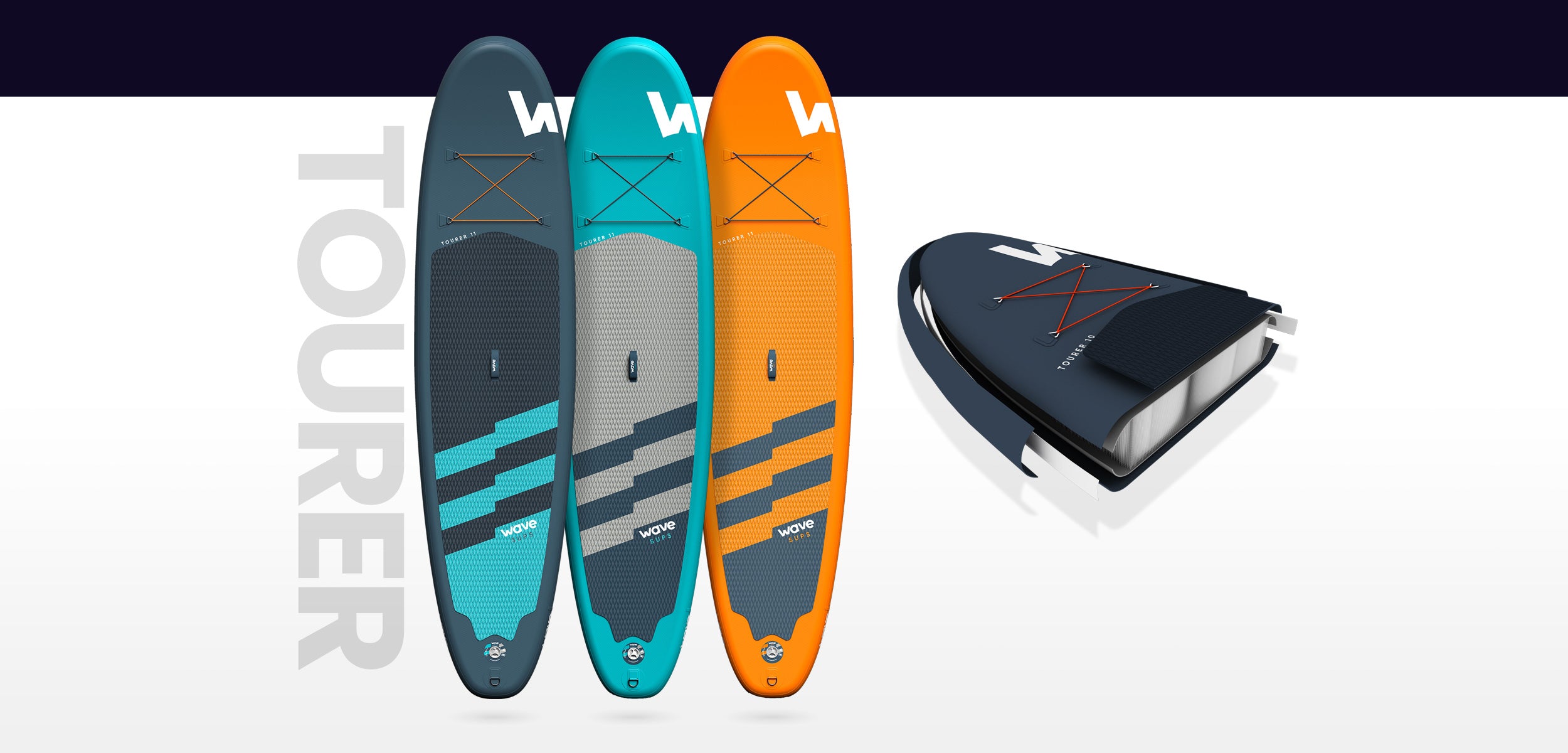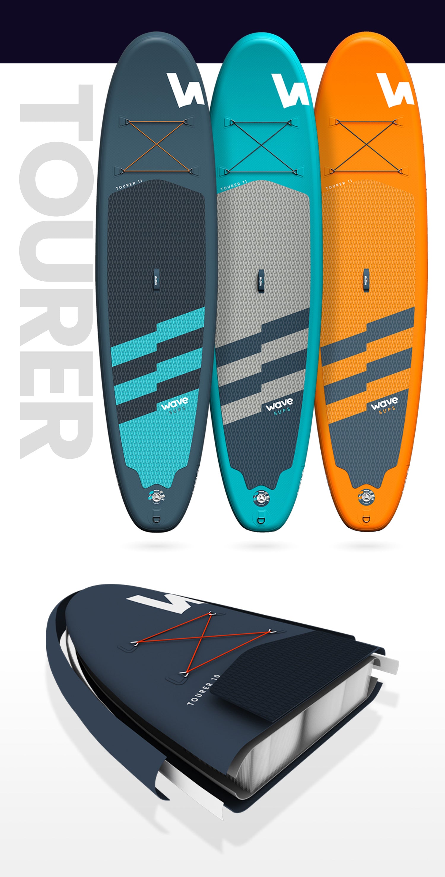 Explore our Wave Tourer SUPs collection, offering versatile inflatable paddle boards, perfect for families and paddlers of all levels. Available in 3 vibrant colours (Aqua, Navy, Orange) and 2 sizes (10ft/305 cm and 11ft/335 cm), Wave Tourer are durable iSUPs that offer enhanced stability due to the paddle board’s generous width. Constructed using Wave’s unique military-grade PVC, this iSUP is an excellent choice for lakes, rivers, canals,
