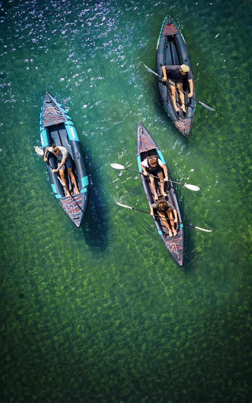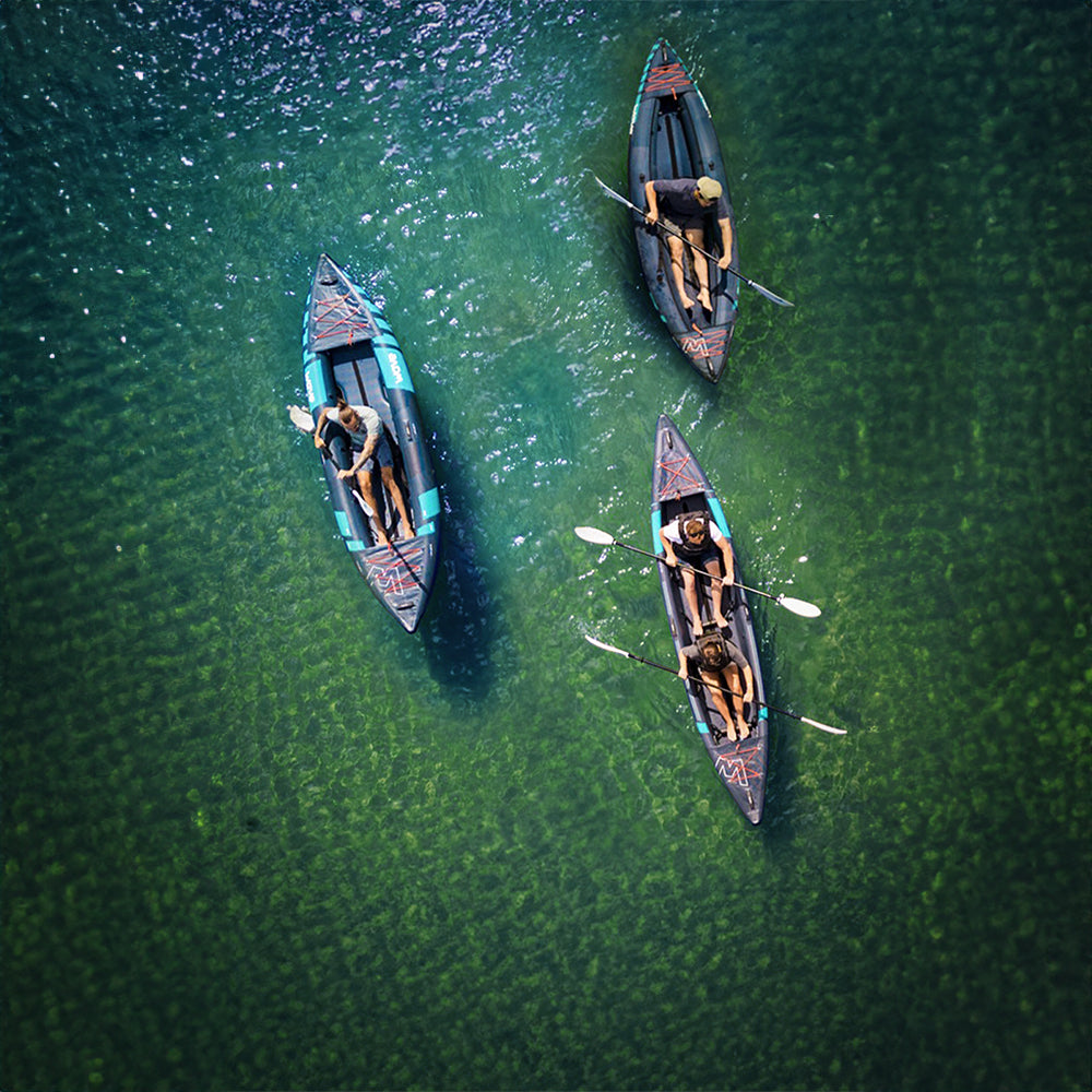 Our Inflatable Kayak Collection provides you with a wide choice between Explorer, Navigator, and Voyager models. All ensuring quick and easy inflation, Wave's Kayak packages arrive complete with a durable backpack for easy storage and transportation as well as a full set of accessories, needed to get you on the water in no time. Discover the health benefits of kayaking, a sport offering both fun and fitness, in practice with Wave's kayaks – and if you're a novice, read our Beginner's Guide for prospective kayakers before you set off.