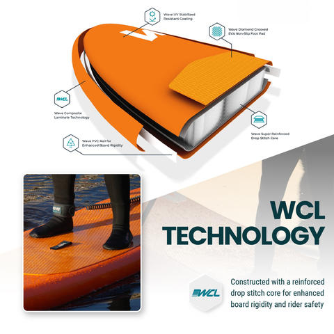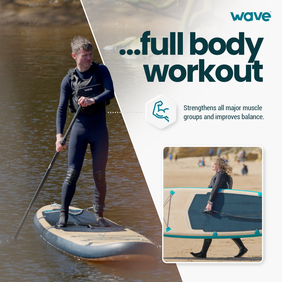 Wave paddle boards come in a range of sizes to ensure optimal balance and performance across multiple water conditions. Sizes include 259cm (8 ft 6 inches), 76 cm / 30 inches wide (10ft board) and 84 cm / 33 inches wide (11ft board). For anyone over 6ft or 70kg / 154lbs + we suggest going for the 11ft iSUP for increased stability.