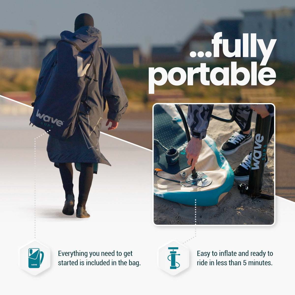 The biggest advantage of choosing an inflatable iSUP for your water adventures, means once deflated, the board can be easily rolled up and packed away with all its accessories for travel by car or plane.